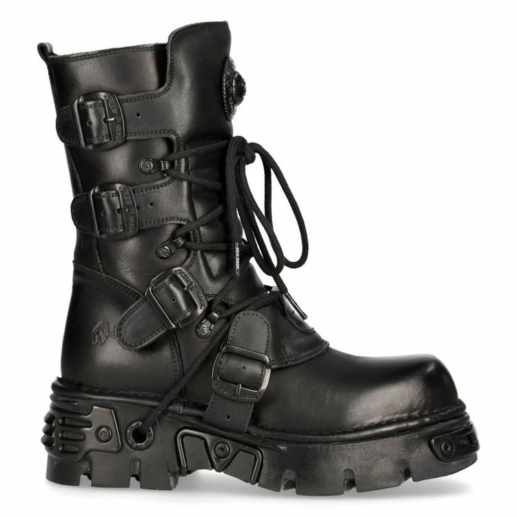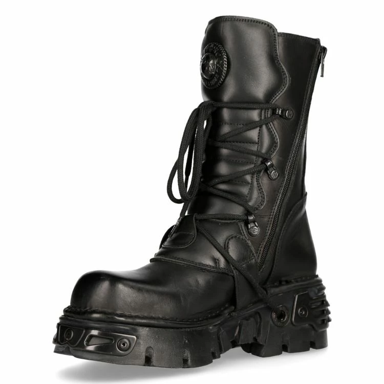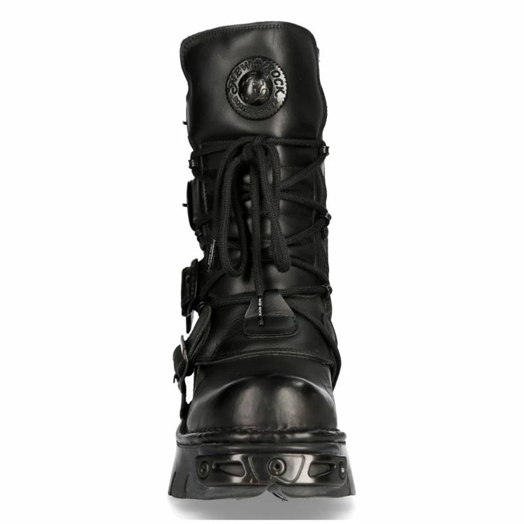 Le moins cher 🤩 Bottes New Rock Metallic Oxido En Cuir Noir Noir ❤️